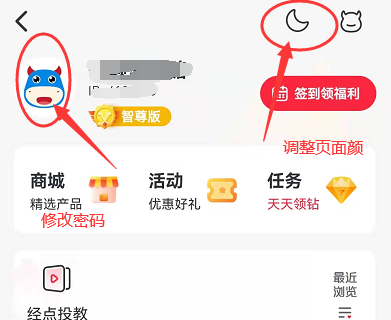 点击牛牛头像到个人中心,修改密码或者更换头像,直接点击对应位置即可