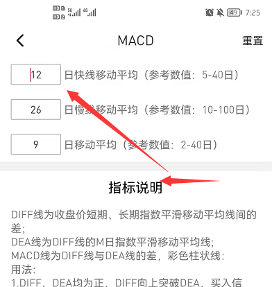 右侧点指标管理选择自己要调整的分时或者主副图指标,点齿轮一样图形的设置,可调整指标参数,如下图点击MACD,可根据自身看盘需求调整macd的具体数字,下面是指标说明。(注意,仅部分指标可以调节参数,)其余的点击问号可以查看指标用法教学。