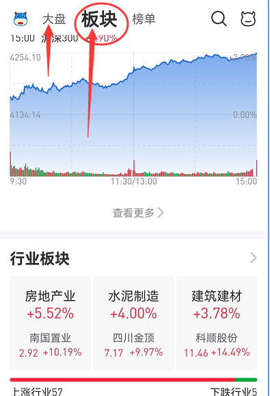 上方选择板块(查看大盘情况也是这个位置),有按照行业板块,概念板块,地区板块等分类,(一般常用概念板块),点进去,可以按照近几日涨幅或者主力买入排序选择资金流入多的板块。