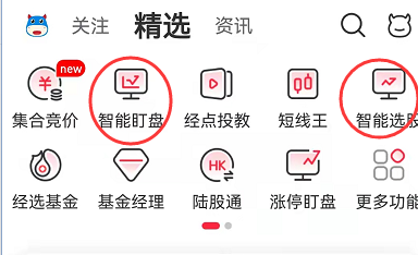 目前手机版常用的选股功能主要有智能选股和智能盯盘,如下图