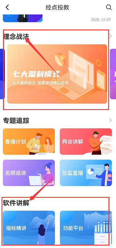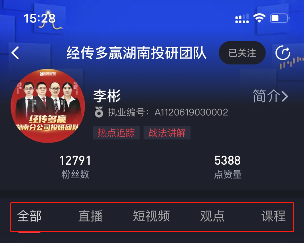 盘中不少老师都有直播教学,分析目前的行情,方向等,盘中如果不知道怎么选股或者想要了解目前大体行情情况的,可以盘中多关注直播消息。短视频更多是教学战法或者分析行情等,一般视频都是15分钟以内,属于浓缩的精华。如果后台老师有开设课程的话,点击课程,即可看到老师教学的课程回放。