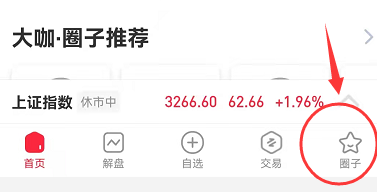 点击首页下面圈子,点击大咖.圈子推荐,可以查看目前经传软件所有的圈子,大家可以根据自己的操作风格,或者老师的教学风格选择喜欢的老师关注