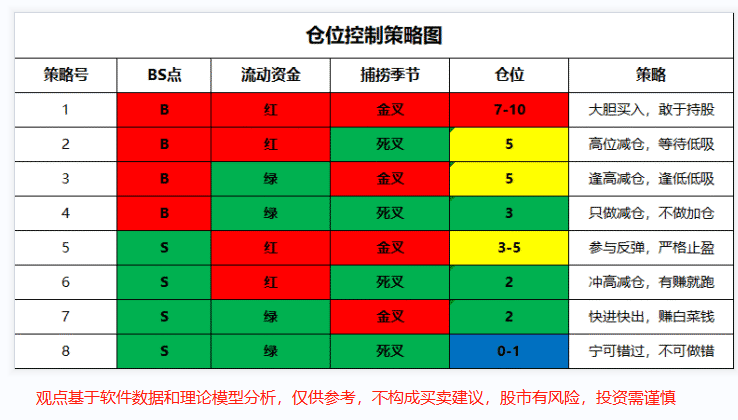 另外,右侧的功能也会提醒你,现阶段属于什么行情,操作方法、胜率、收益率以及仓位等提示。很多朋友喜欢满仓去做股票,但这个是错误的,仓位的多少并不是由自己决定,而是结合大盘信号来判断,以下参考一张仓位策略图。