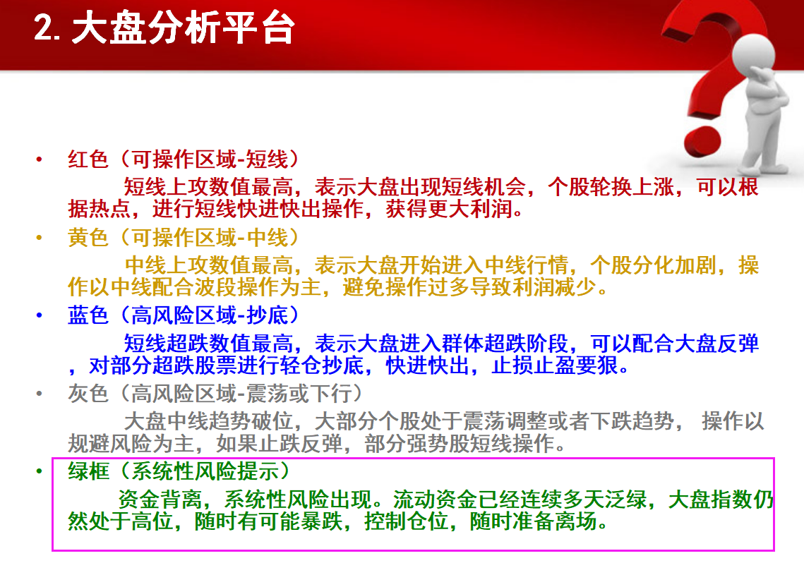 做短线的话,重视红色的短线上攻走势,持续拐头向上走是比较多短线个股的机会,短线上攻向下走则是市场上短线个股减少,操作难度大,也不要逆势而为。
