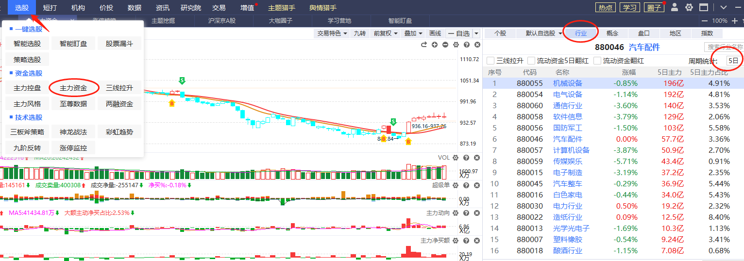 电脑端:打开【选股】——【主力资金】——【行业】