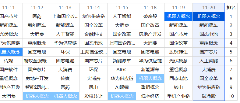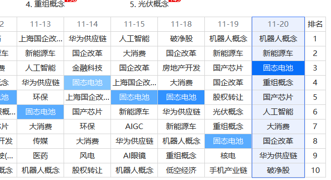 符合条件的主题有:机器人概念、新能源车、固态电池