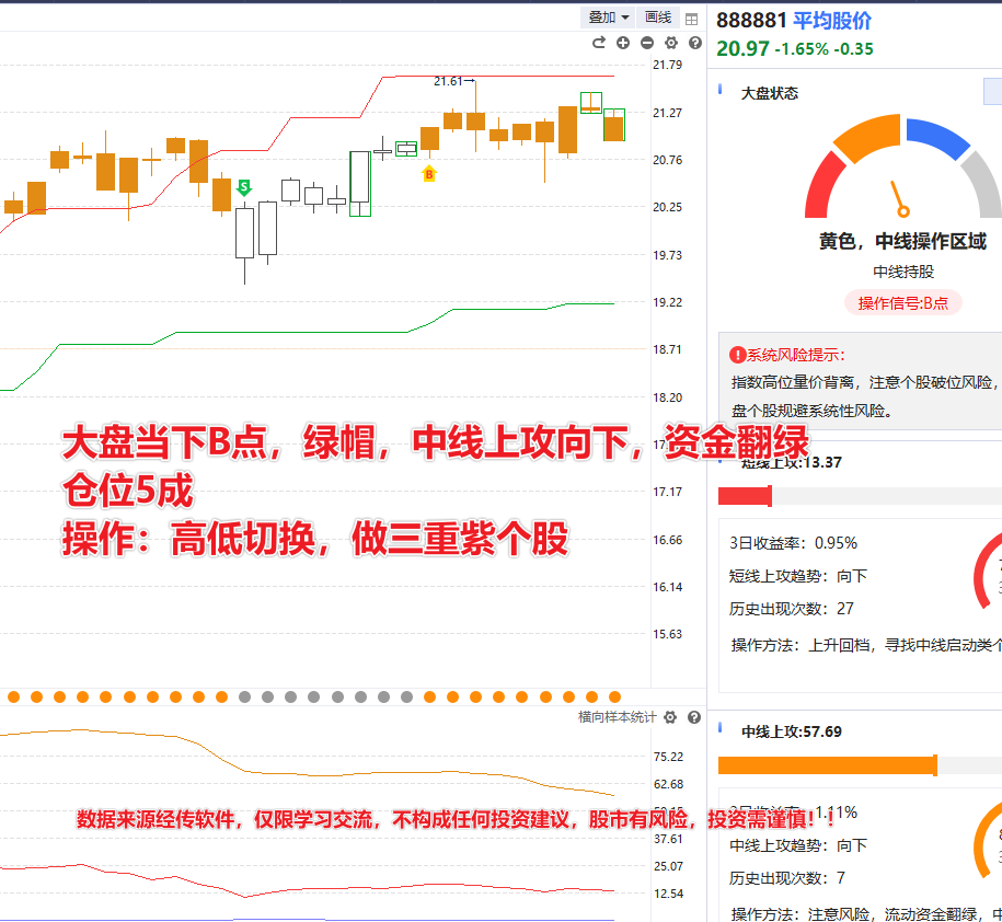 这几天大盘量能节前习惯性缩量避险因为这次的小长假有点长,但是市场氛围问题不大,逐步加仓然后持股过节。