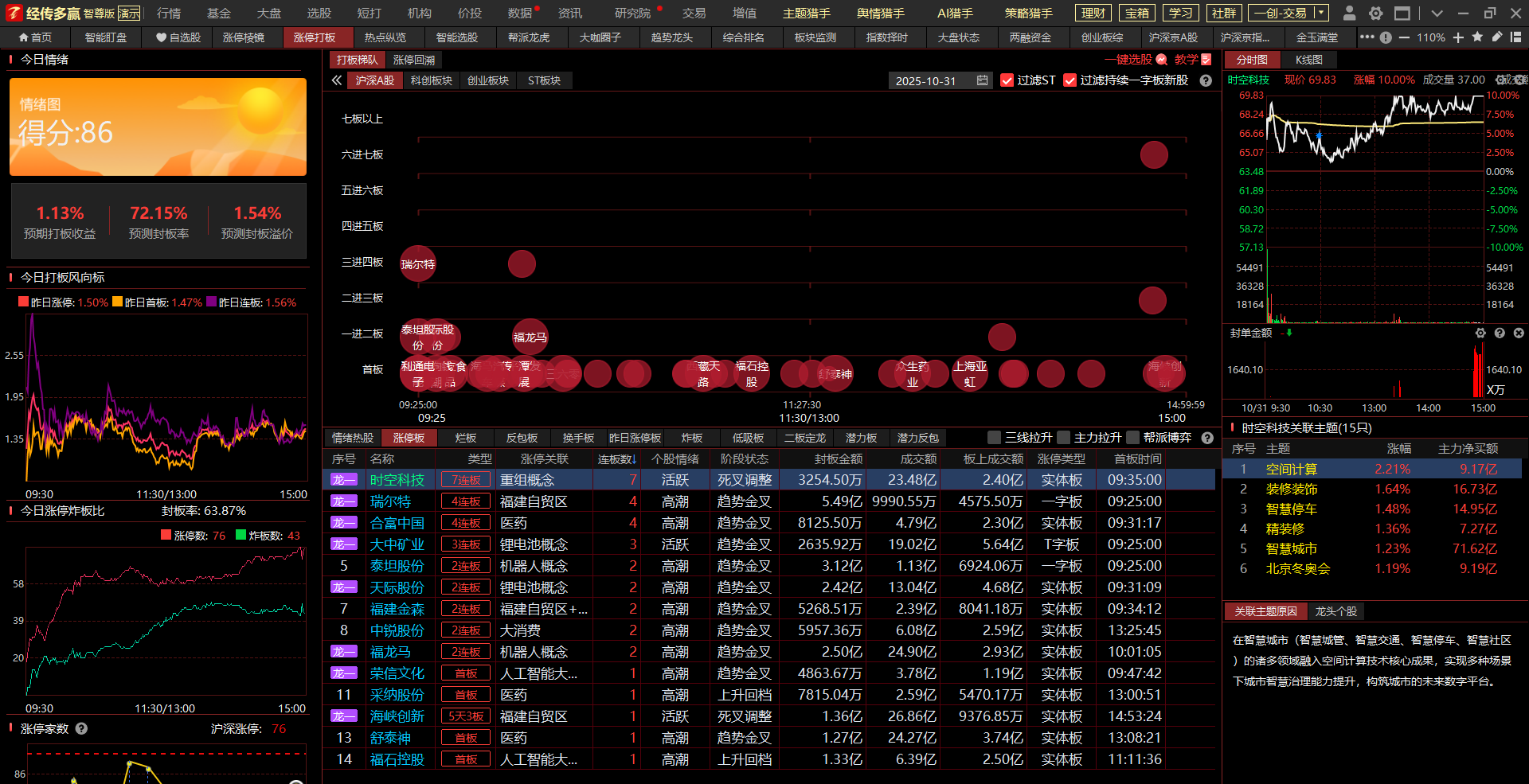 3.龙头高度及分布(数据来源于主题猎手之涨停打板功能)