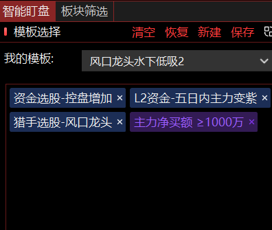 选股模版选出来的个股,则按跌到涨的排序,然后依次看主力净买额资金,大额主动净买,超大单净买;