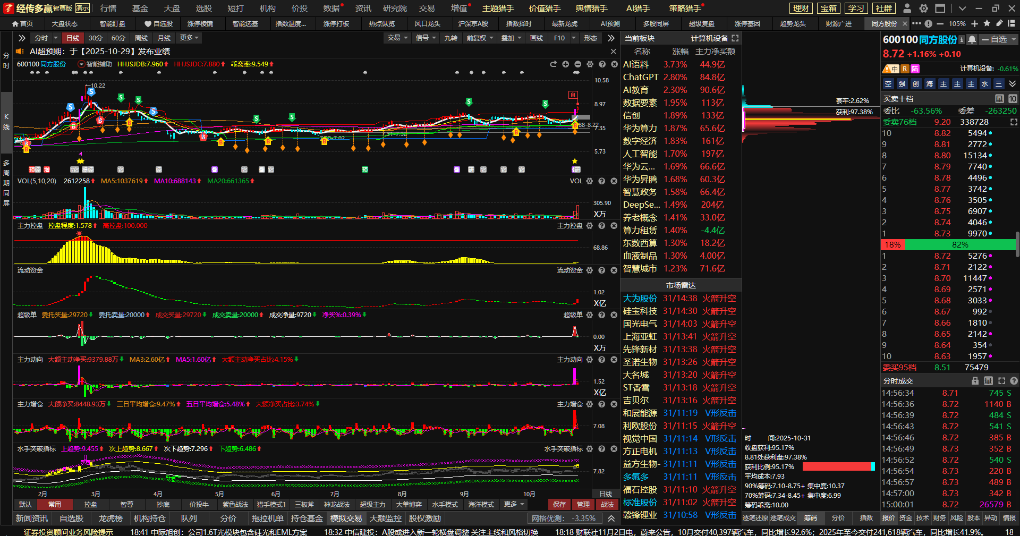 其实最近这段时间,芯片,算力,液冷,机器人,新能源,核聚变,量子通信,光通信等一些具备科技主线的方向都出现了一定的轮动,唯独人工智能这一个科技方向还没有啥表现,那么10.31号的人工智能炒作异动,就要重点去关注了。