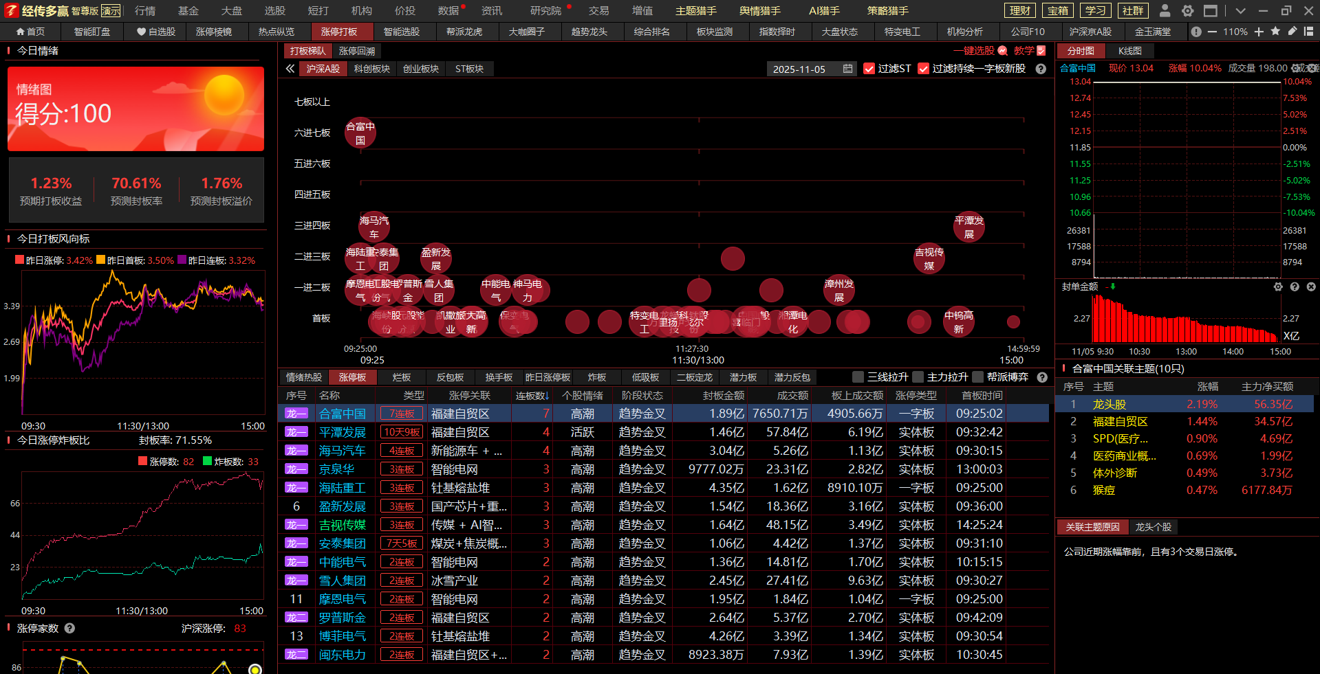 3.龙头高度及分布(数据来源于主题猎手之涨停打板功能)