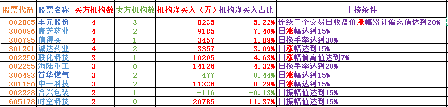 6.每日席位解读(主要是对个股的席位和软件指标进行一些解读,更好的理解席位的用法和软件信号,非荐股,对于机构席位大幅买入的品种,从逻辑上来讲是机构看好的预期,对这类品种需引起思考,对于选取做点评个股的逻辑主要是以下几点:机构净参与家数、机构席位净买金额、净买金额占比等)。
