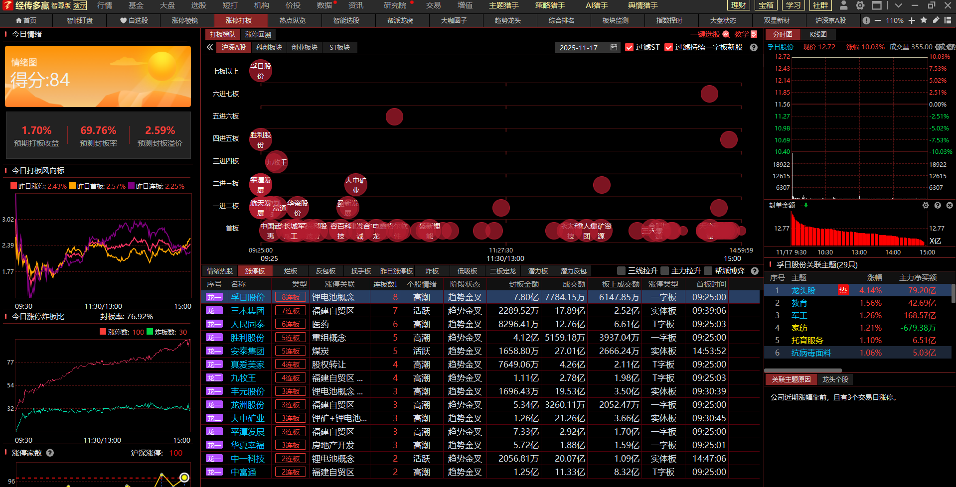 3.龙头高度及分布(数据来源于主题猎手之涨停打板功能)