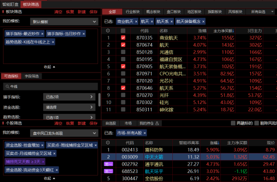 【航天】选择回档类型,【光通信】/【光芯片】选择金叉第一天或者死叉末端回踩支撑位的类型,符合高抛低吸的执行策略。
