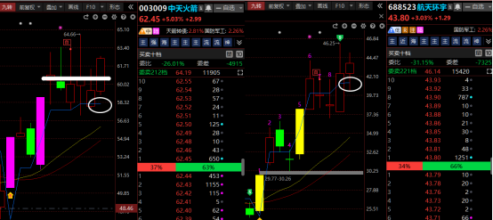 比如【中天火箭】【航天环宇】是已经进入二浪回踩,所以回踩蓝线或者震荡中间,是符合支撑位买入信号。