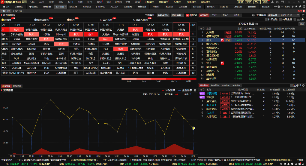 航天:涨停棱镜分析,航天方向虽有分化,但板块依然反复上榜。说明航天依然存在结构性机会。但要注意高低切换,避高就低。多寻找一些刚底部首次启动突破的航天票去跟踪,没有就不做。