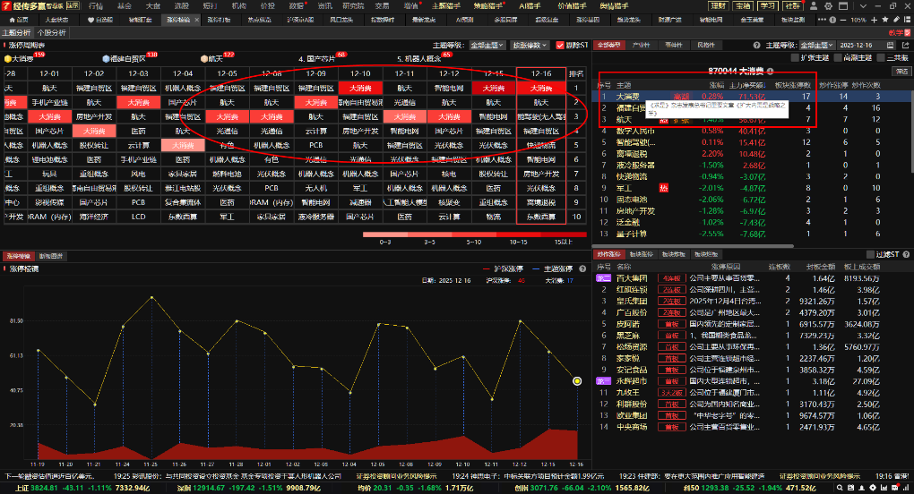 大消费:最近大盘调整,能继续走强翻红的方向只有大消费。