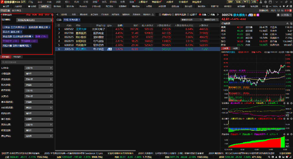 可以看到符合双线擒龙模型的个股有6个,那么结合以下条件去做优选: