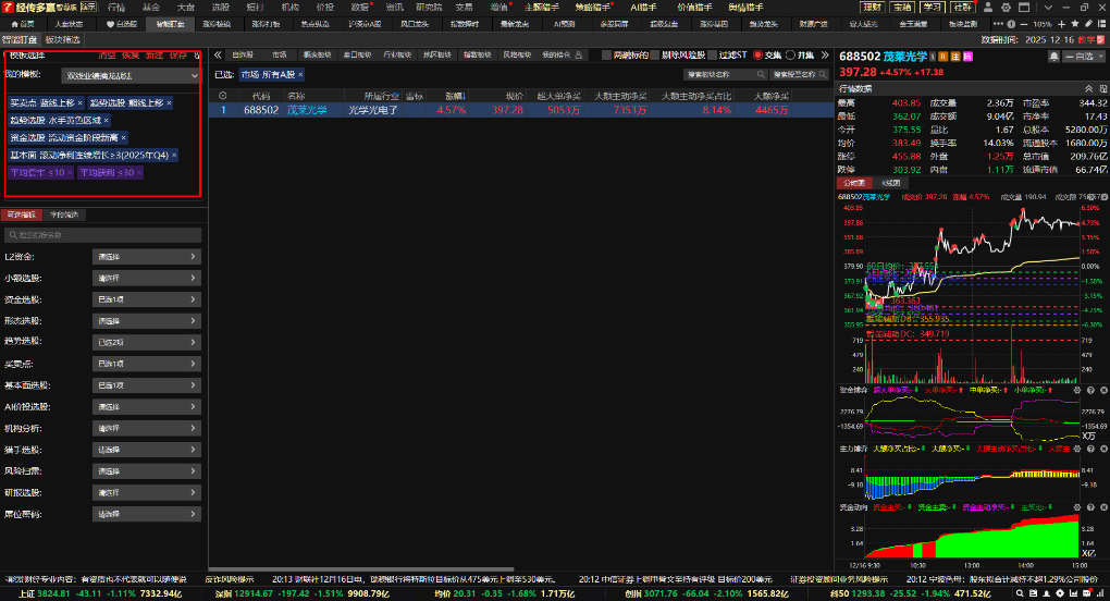 可以看到符合选股模型的只有:茂莱光学