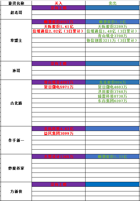 4.知名游资动向(数据来源于席位密码中帮派龙虎)