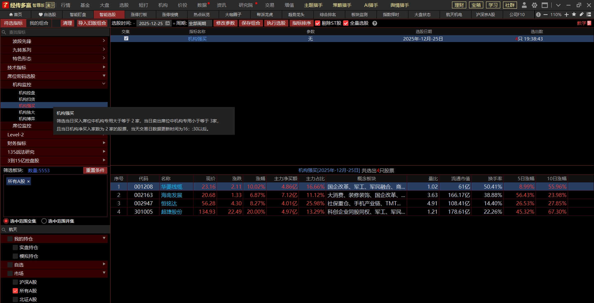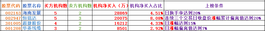 6.每日席位解读(主要是对个股的席位和软件指标进行一些解读,更好的理解席位的用法和软件信号,非荐股,对于机构席位大幅买入的品种,从逻辑上来讲是机构看好的预期,对这类品种需引起思考,对于选取做点评个股的逻辑主要是以下几点:机构净参与家数、机构席位净买金额、净买金额占比等)。