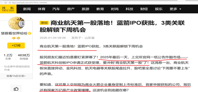 元旦期间火爆热点:卫星互联网-----蓝箭航天