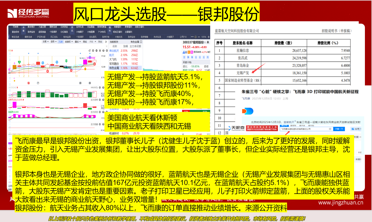 - 张江高科:通过产业基金投资,不仅是股东,还为蓝箭对接上海的研发和产业资源,属于“投资+生态”双重绑定 ;