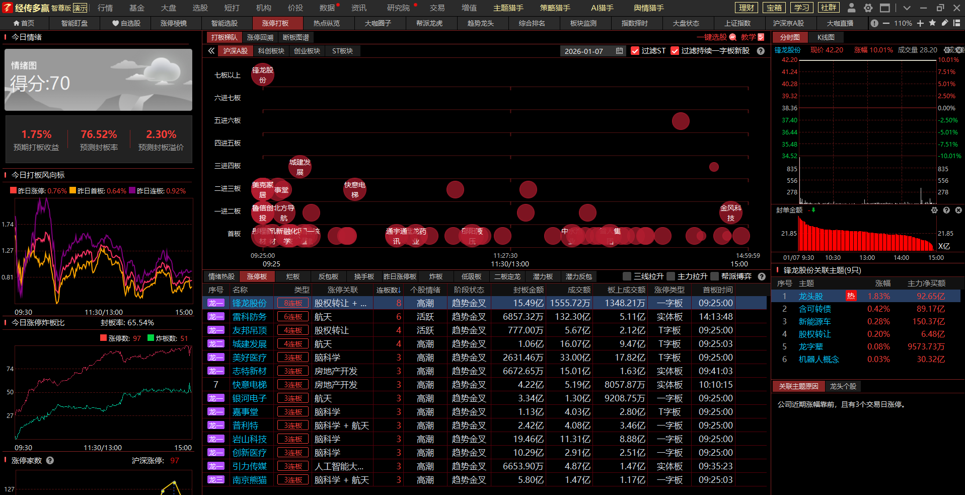 3.龙头高度及分布(数据来源于主题猎手之涨停打板功能)