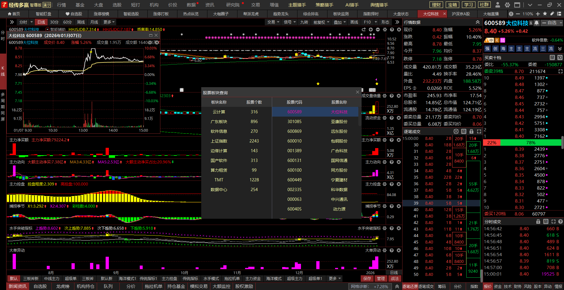 (5)优选控盘攀升、大单异动频繁的个股