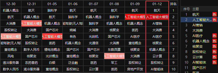 目前涨停棱镜上榜的方向主要是大消费、航天、国产芯片、机器人、脑科学、人工智能大模型等。AI应用逐步取代商业航天。