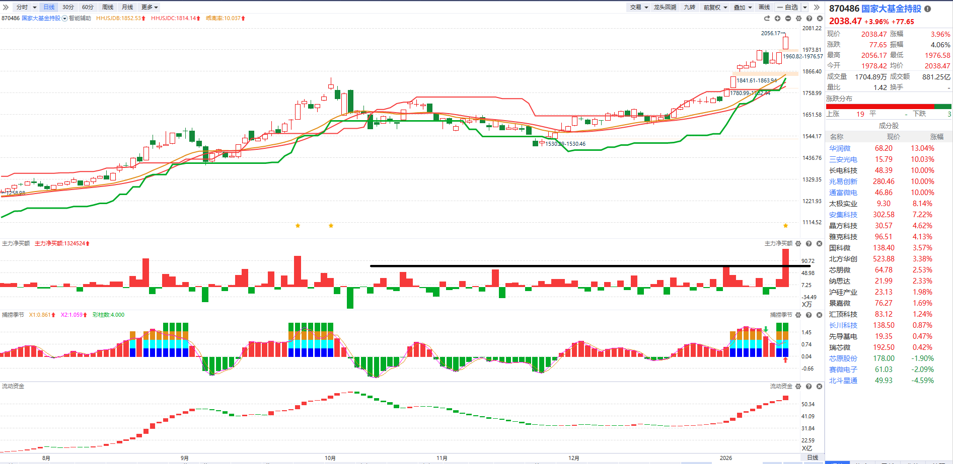 国家大基金持股,也是符合【炒作+资金异动+流动资金翻红+股价在牛熊线上】