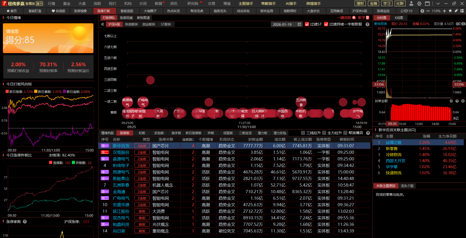 3.龙头高度及分布(数据来源于主题猎手之涨停打板功能)