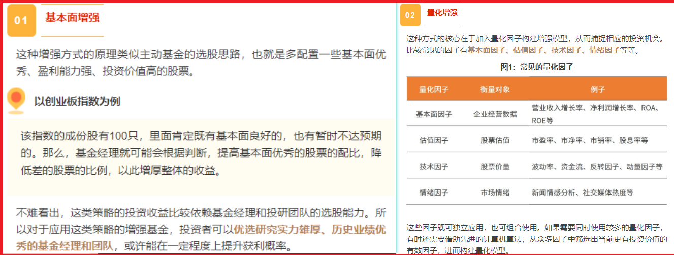 上面的图是主动型量化基金和指数增强基金的基本解释和解读举例