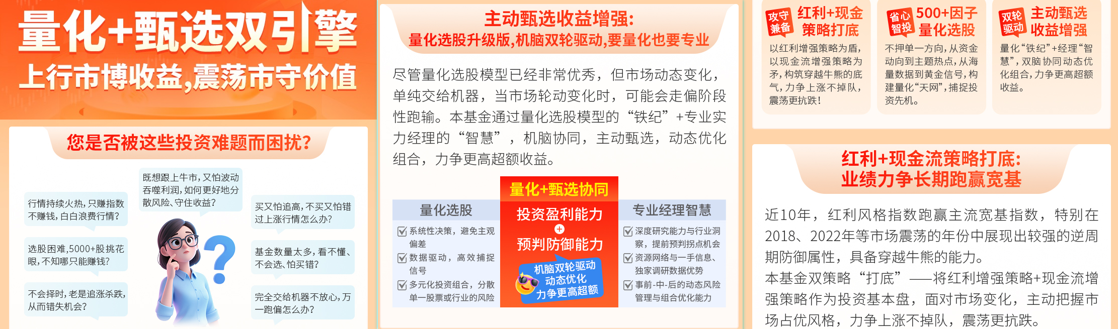 在上涨行情中力争获得更高的超额收益;在震荡下跌市场中,通过量化模型严控组合下行风险。