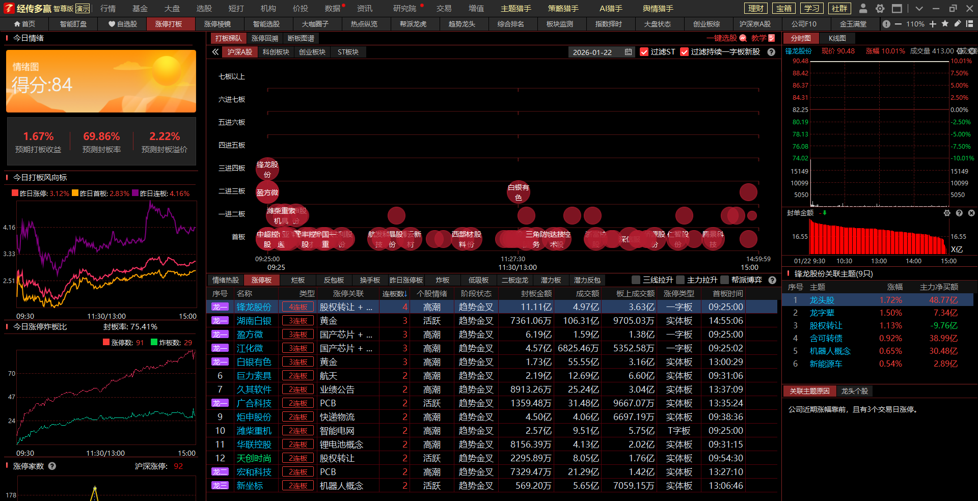 3.龙头高度及分布(数据来源于主题猎手之涨停打板功能)