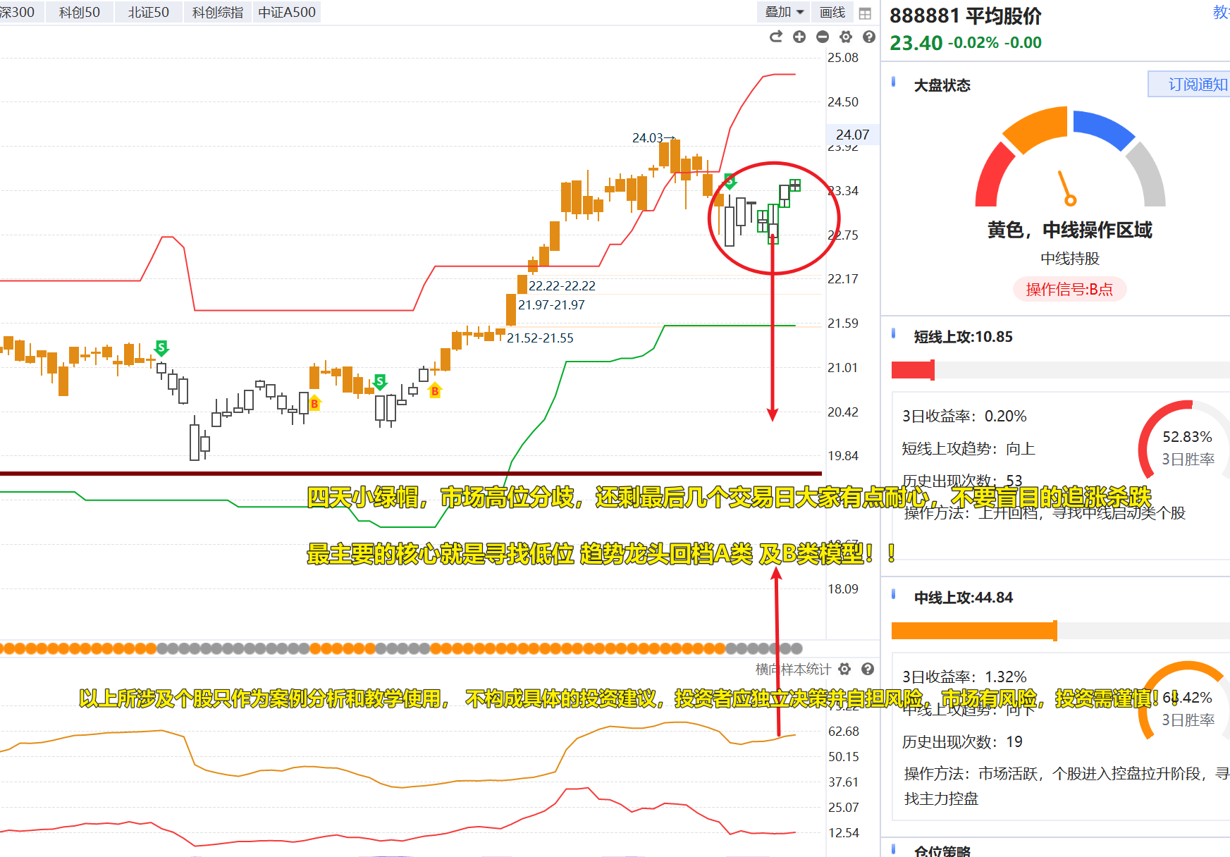 投顾视点:市场震荡分歧进入到尾盘阶段,小绿帽4天注意盘中的量能变化时刻保持稳定的警惕,不要盲目的去追!!有点耐心,最后几天可以调仓,简单理解就是T0优势今操作,看不行周四可以调,明天操作周五是最后的调仓机会!!