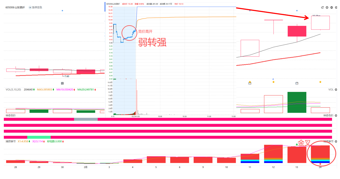 此时,如果你只盯着日线级别的捕捞季节金叉,会发现金叉信号尚未出现。但分时图的语言已经告诉你:主力已经动手了!等到日线金叉确认,股价往往已经拉升甚至封板,你就错过了最佳成本区间。最终,山东玻纤日内封死涨停,验证了竞价信号的领先性。