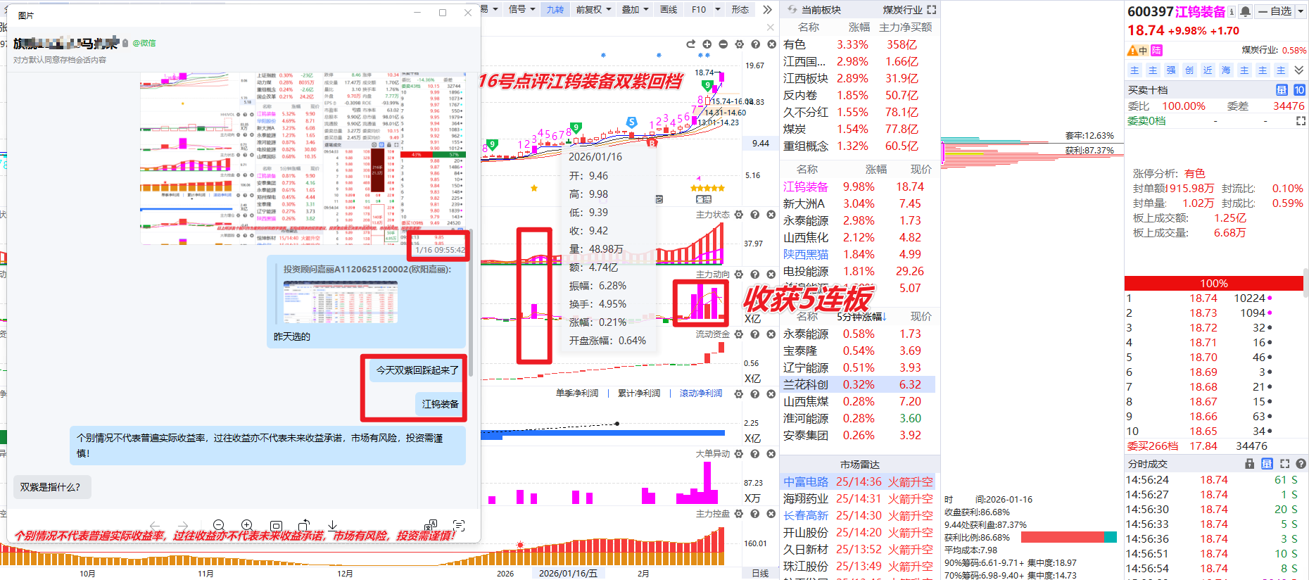 https://imgs.n8n8.cn/1772021248138xT1W77xN5buA8oGh">1月16号江钨装备符合双紫回档起来。后续B点后蓝线上移开始走强,走出了翻倍的走势。