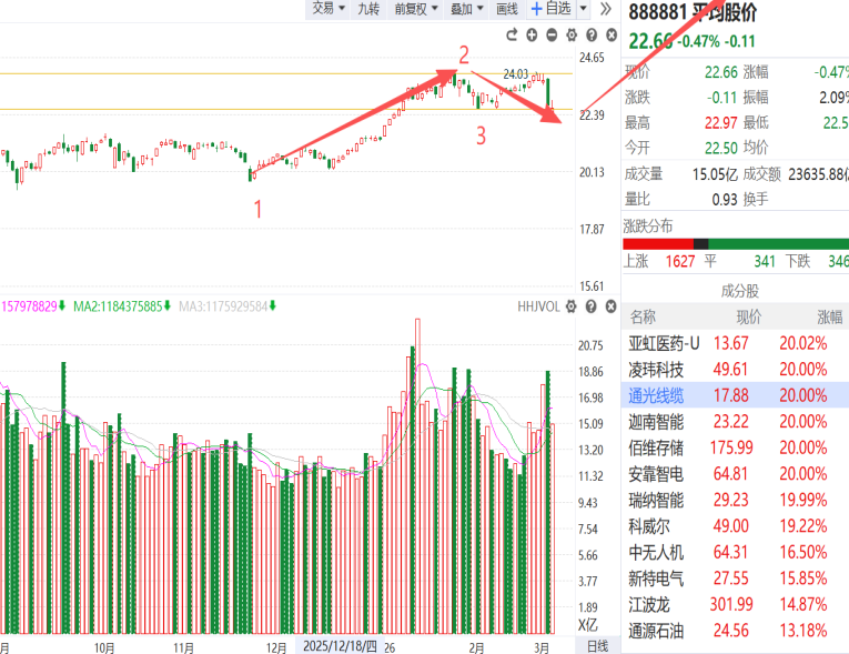 图1平均股价还是箱体震荡,还在低点3位置