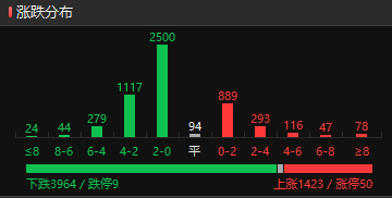 下跌个股3964只,大涨个股78,大跌个股24,赚钱效应一般,涨停板50个,连板11个,二板8个,连板效应良好,最高板4板。
