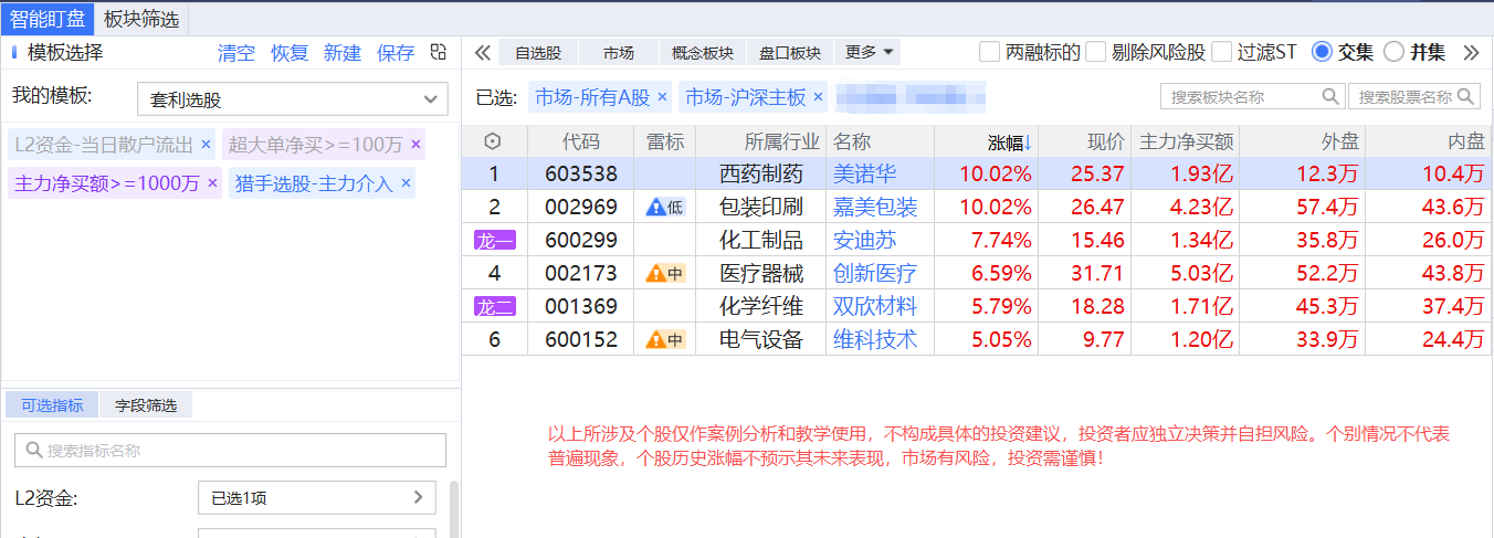 智能盯盘--套利选股策略: