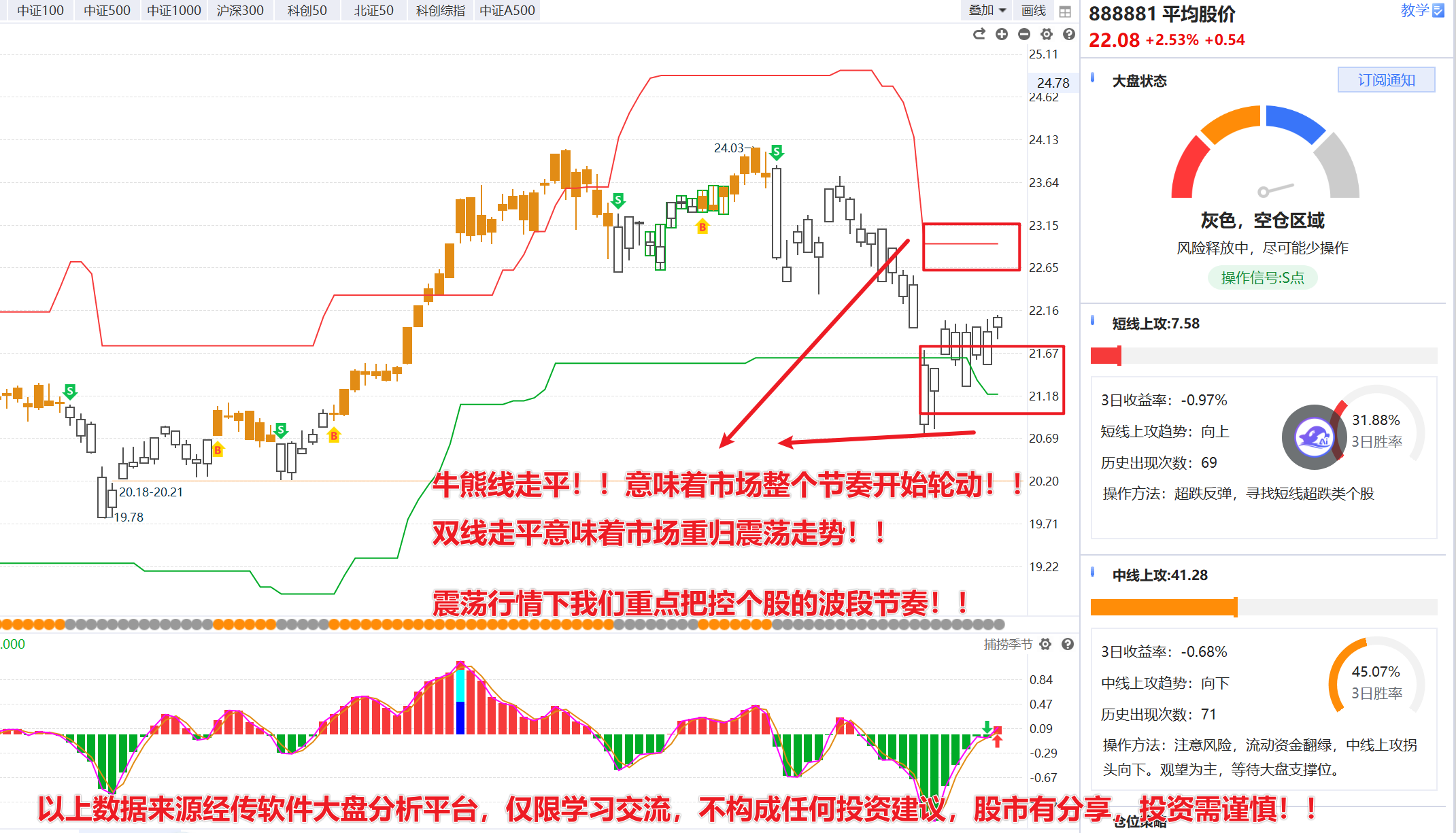 投顾视点:大盘目前双线走平意味着市场开始拉锯的震荡市,美伊政治因素缓和,所以这个位置我们重点需要调整操作策略,注意高位回撤的题材个股风险,然后轮动关注医药,芯片,科技股的反弹持续性,操作上以双紫/三紫为核心!!