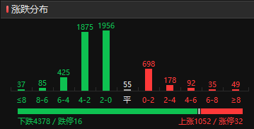 下跌个股4378只,大涨个股49,大跌个股32,赚钱效应较差,涨停板32个,连板6个,二板2个,连板效应较差,最高板5板。