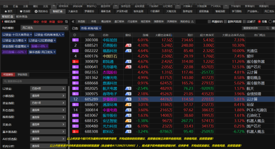 按照风口龙头选股,按照大额主动净买额排序,剔除涨幅高的 显示芯原股份(注意高风险,稳健的快进快出)、有涨停基因,主力动向爆量的杰瑞股份,低位启动的中富电路、罗曼股份等, 选股不等于买股,控制好股票数量,买股需要看买卖点。