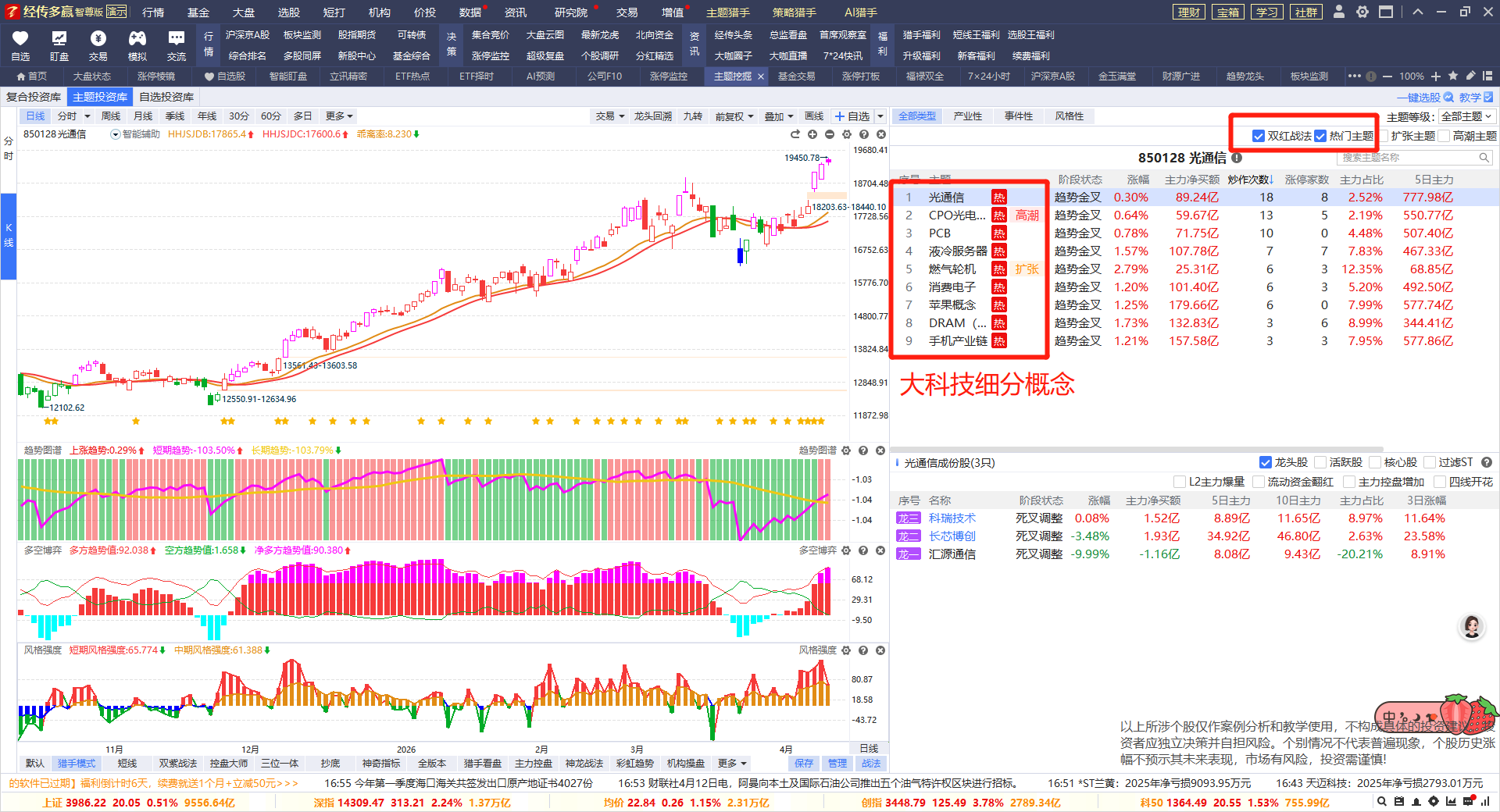 符合猎手【双红+最近热门】的方向集中在大科技上