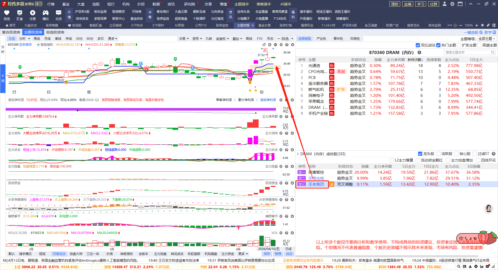 率先回调的是【圣泉集团】,目前回档符合t+3日,有蓝线支撑,符合支撑性买点信号,留意分时回踩低吸机会。
