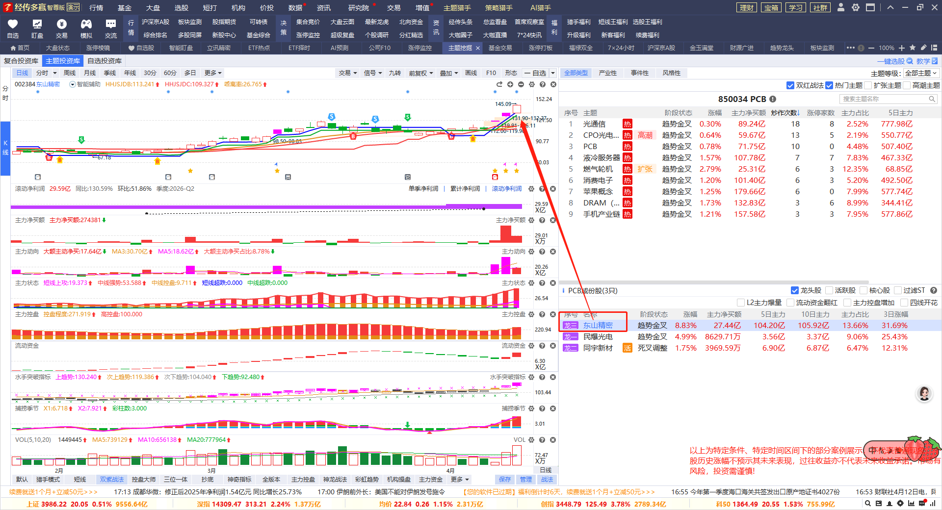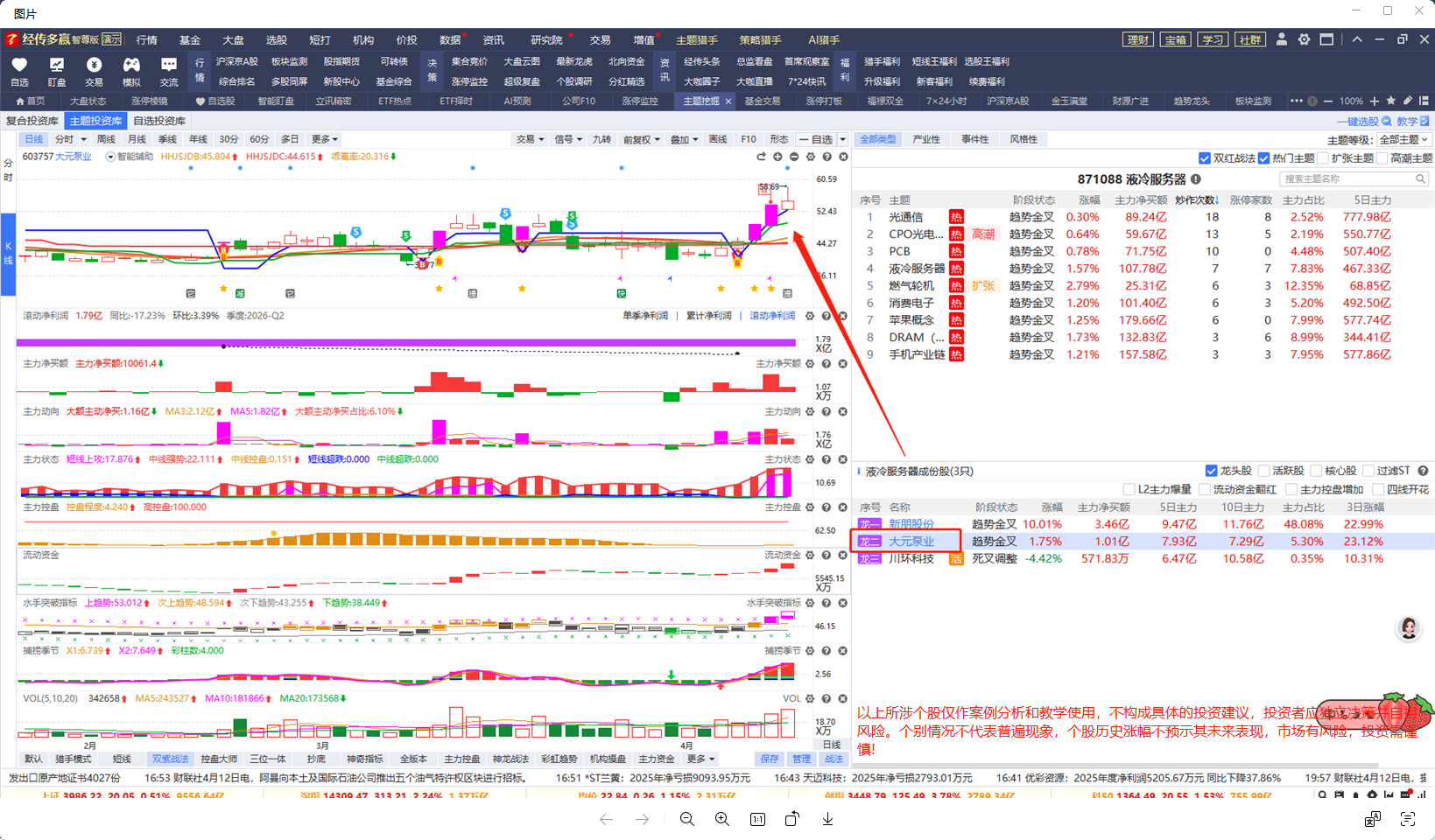 打开主题挖掘--主题投资库,打钩双红+热门主题,打钩龙头股