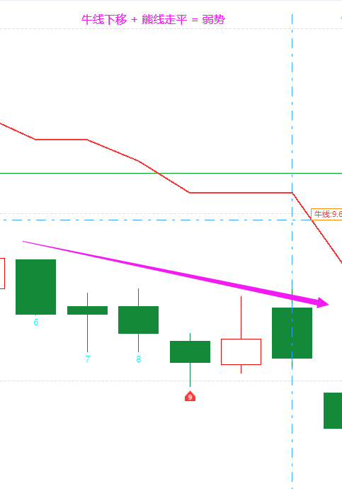 弱势形态:牛线主动跌破能线,杀跌开始。